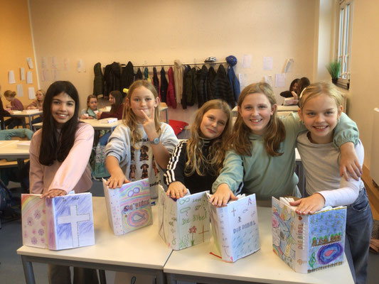Mit viel Fantasie und Geschick bastelten sie aus Papier kunstvolle Hüllen, die sie mit christlichen Symbolen, Farben und Motiven verzierten.