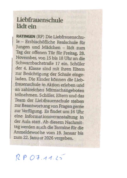 LIEBFRAUENSCHULE RATINGEN - Erzbischöfliche Realschule in Bi-Edukation