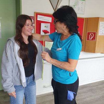 Die spontane Reaktion der Beschenkten war überwältigend und von großer Dankbarkeit geprägt: „Die Idee finde ich wirklich besonders, wertschätzend und wunderbar!", lobte Ilka Marschaleck vom Seniorenzentrum 360° die Initiative der Liebfrauenschule.