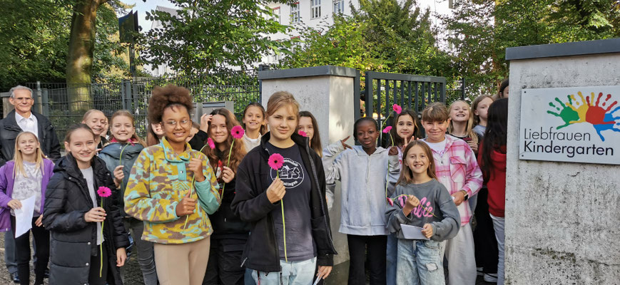 Sie schwärmten in Scharen aus, um Danke zu sagen. Anlässlich ihres Patronatsfestes am 11. September machten sich rund 700 Schüler*innen der Liebfrauenschule persönlich auf den Weg zu karitativen Institutionen in der Region Ratingen. Ihr ihren Händen hielten die Jugendlichen eine kostbare symbolische Gabe: Rote Rosen, die direkt vor Ort an ausgewählte haupt- und ehrenamtliche Helfer überreicht wurden, die das soziale Leben in Ratingen mit ihrem wertvollen Engagement bereichern.